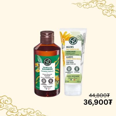сонгоно.Арника цэцгийн найрлагатай гарын чийгшүүлэх тос болон ванилийн тансаг үнэртэй биеийн шингэн саван нь арьсыг чийгшүүлж, булбарай зөөлөн болгоно.