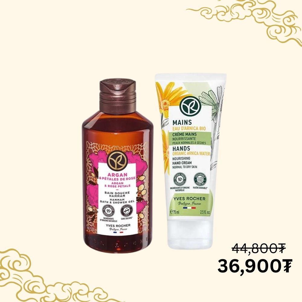 сонгоно.Арника цэцгийн найрлагатай гарын чийгшүүлэх тос болон Арган болон сарнайн тансаг үнэртэй биеийн шингэн саван нь арьсыг чийгшүүлж, булбарай зөөлөн болгоно.